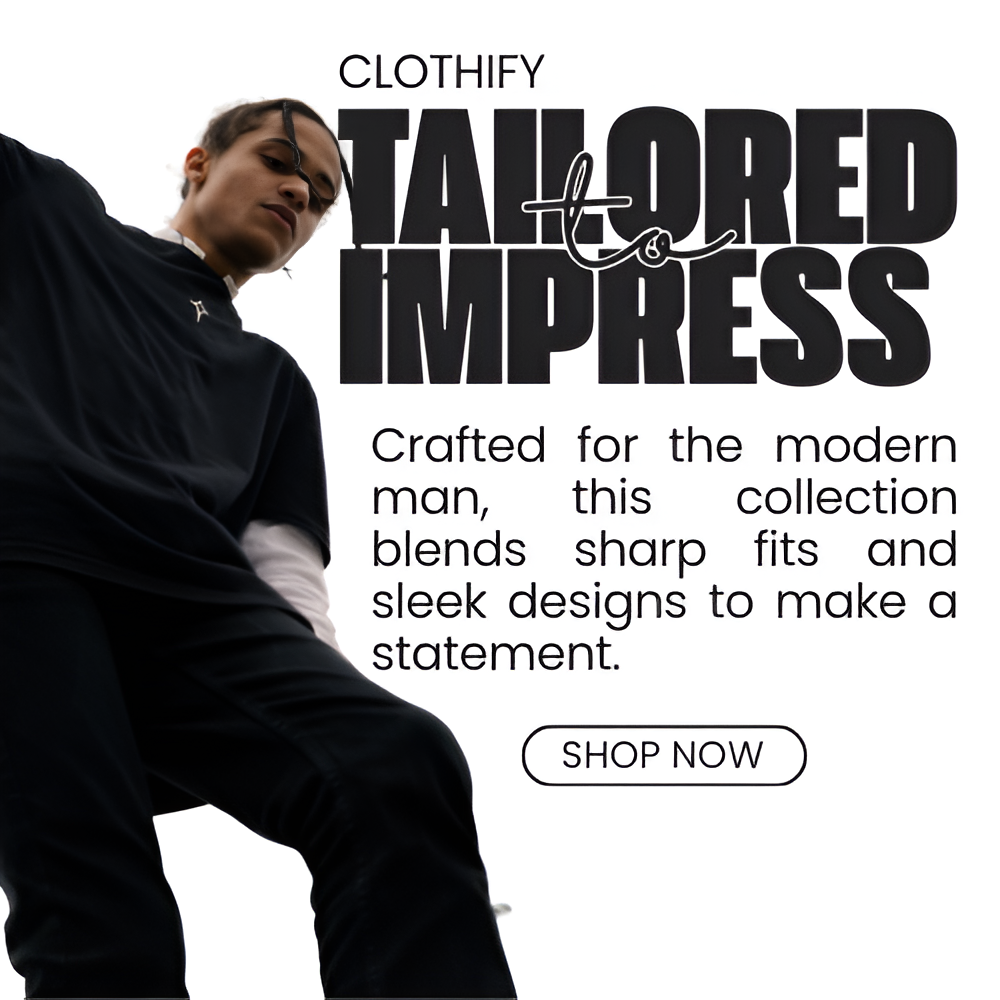 At Clothify, we bring you the perfect blend of comfort, quality, and modern style. Our exclusive men’s collection is designed to elevate your everyday look — whether you're heading to work, a casual hangout, or a night out. From premium fabrics to precise stitching, every piece reflects durability and confidence. Discover fashion that keeps you moving bold, sharp, and unstoppable.