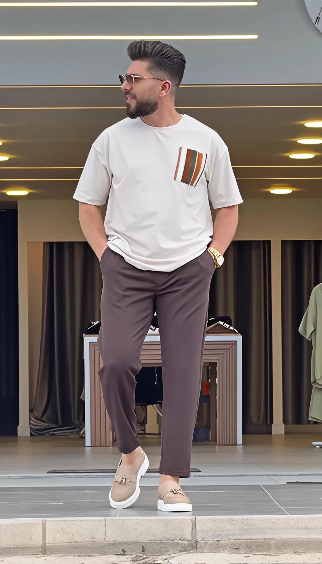 Crafted from premium breathable fabric, this relaxed-fit ensemble features a drop-shoulder oversized top paired with wide-leg trousers that flow with ease and confidence. The earthy neutral tone gives it a timeless appeal, while the modern silhouette ensures it stands out in every setting – from casual hangouts to creative workspaces.